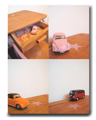 In the south west of France Olivia started her small business of restoring vintage furniture ... "les happy vintage" as she calls them. After having sanded, repainted, magnified chairs, school desks, cabinets or toys, she adds a little personal note as these small stars, one of her favorite motifs.